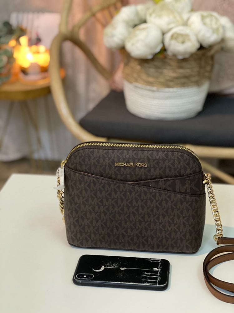 تتميز حقيبة كروسبودي هذه بجاذبية مميزة في قماش مطبوع بالشعار مزين بتفاصيل الغرز العلوي. تم تقديمه على شكل قبة منظم، ويتميز بحزام قابل للتعديل بسلسلة وجيب انزلاق خلفي مريح.