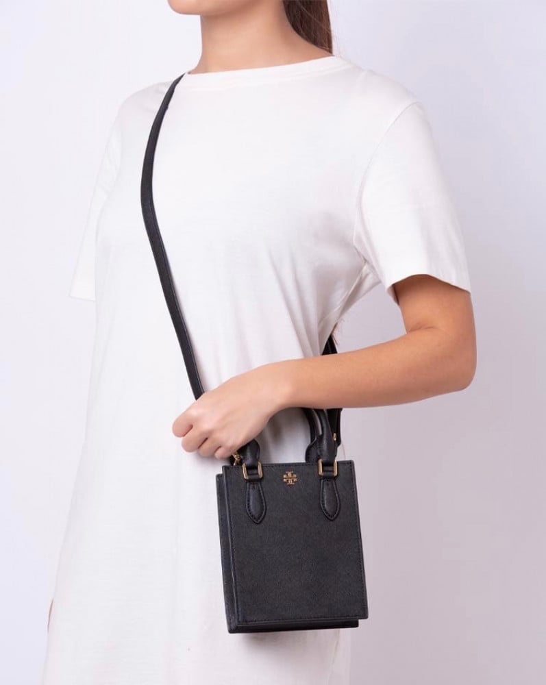حقيبة كروسبودي توري برتش من الجلد المصقول المرصوف (الحصى) باغلاق مغناطيسي ، مناسبة للاغراض الاساسية.